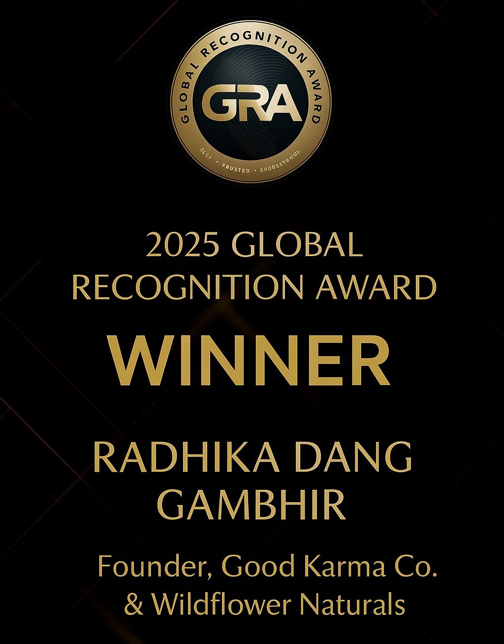 Radhika Dang Gambhir has been recognized with a 2025 Global Recognition Award for her work in clean wellness production and sustainable cosmetics. Dang founded Good Karma Wellness Private Limited and Wildflower Naturals, building these ventures from her home into internationally recognized labels that produce for over 50 conscious companies across India and beyond. Her approach combines Ayurvedic wisdom with scientific validation, creating over 500 clean formulations that prioritize human health and environmental responsibility.
