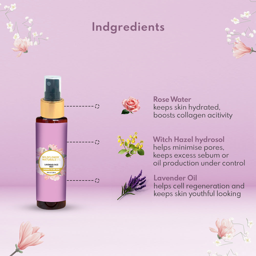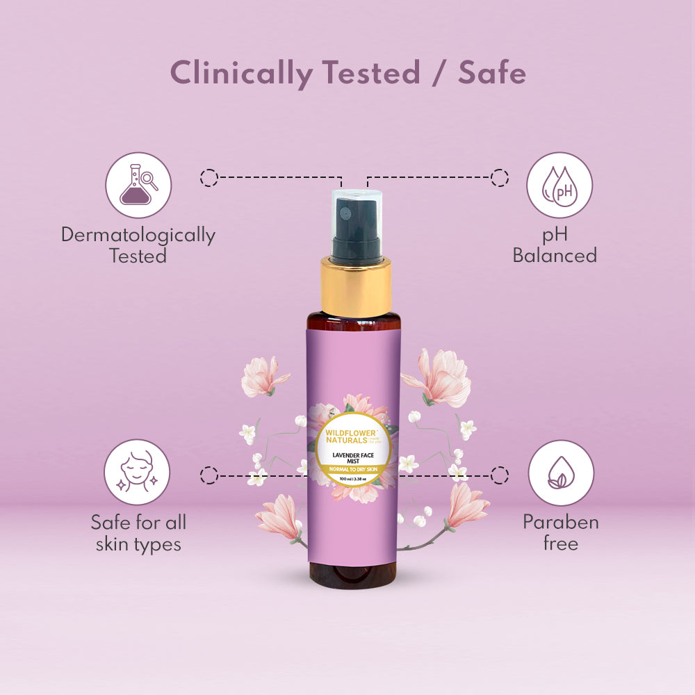 Lavender is generally considered safe for most skin types, including sensitive skin. However, individuals with very sensitive skin may want to perform a patch test before using the face mist to ensure compatibility. Lavender's calming and soothing properties can benefit sensitive skin by helping to reduce inflammation and irritation.