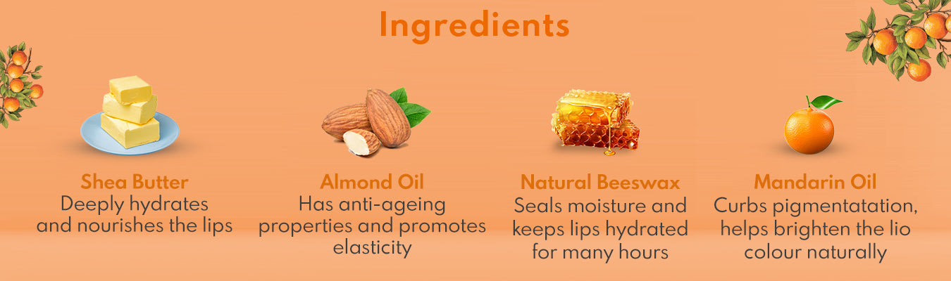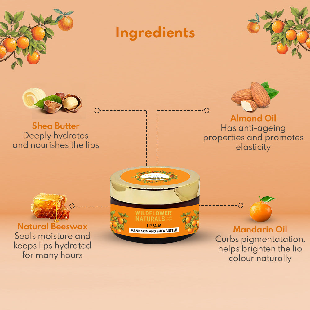 Mandarin is known for its brightening and revitalizing properties, helping to improve the overall appearance of the lips. It contains vitamins and antioxidants that help protect the lips from environmental damage. Shea butter is a natural emollient that deeply moisturizes and nourishes the lips, helping to repair and restore dry, chapped skin.